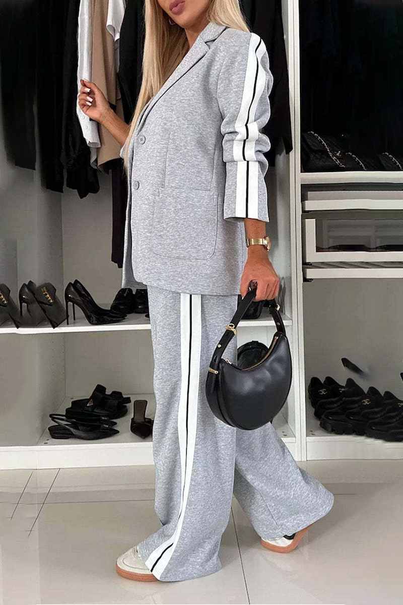 Casual Stripe Buttons Patchwork Contrast Turn-back Collar Long Sleeve Two Pieces(7 Colors)